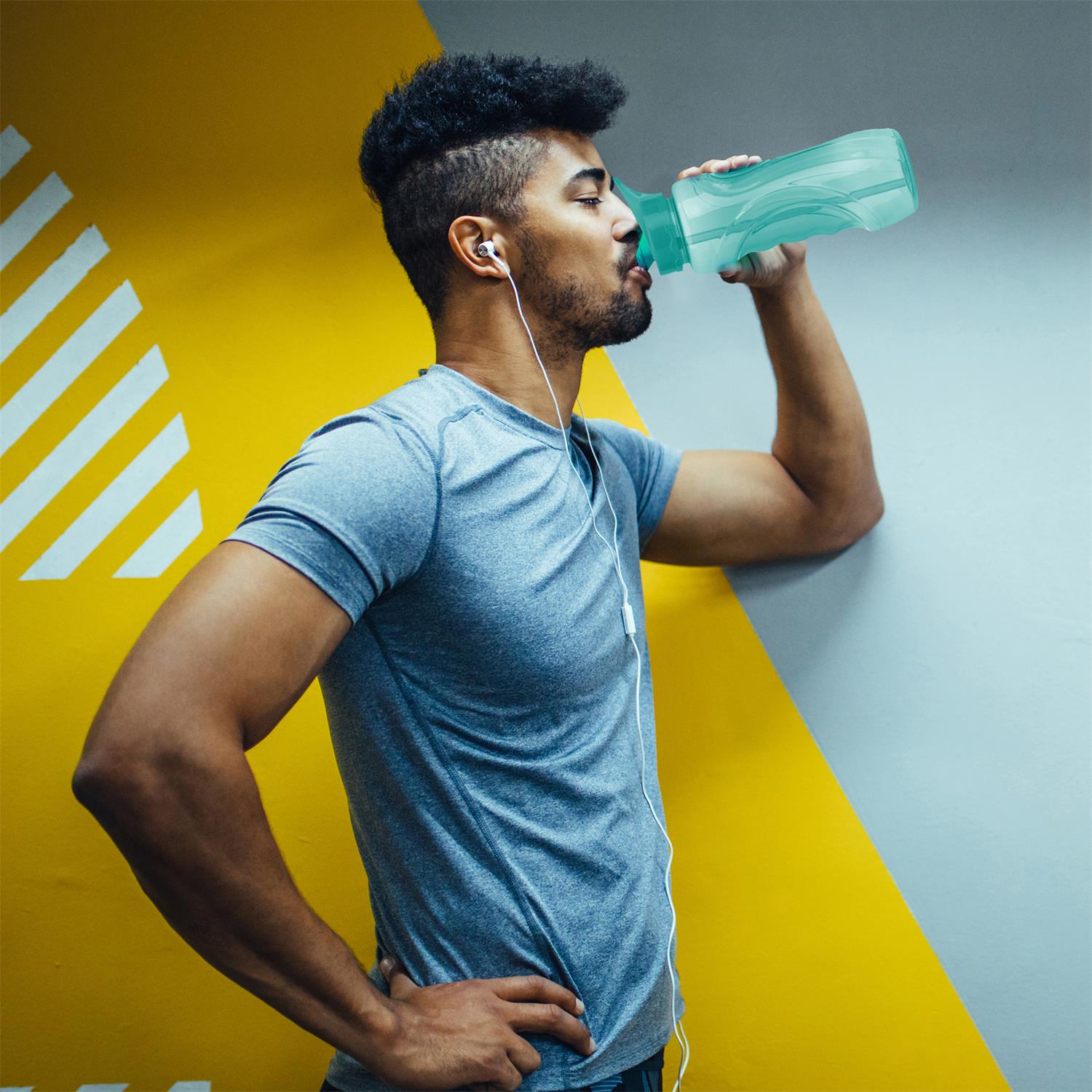 Pateicoties lielajam 900 ml tilpumam, pudele palīdz uzturēt pietiekamu šķidruma uzņemšanu visas dienas garumā.