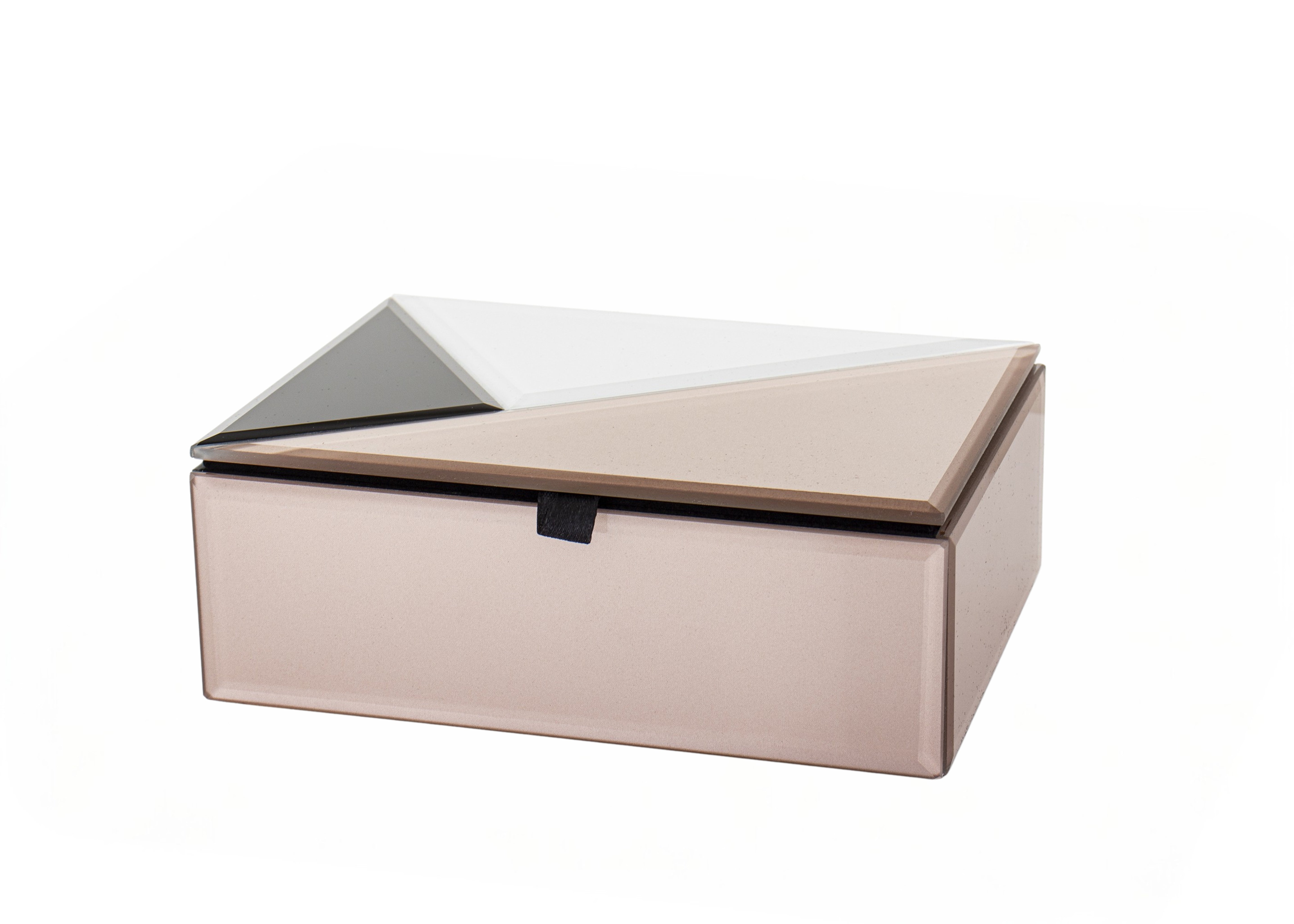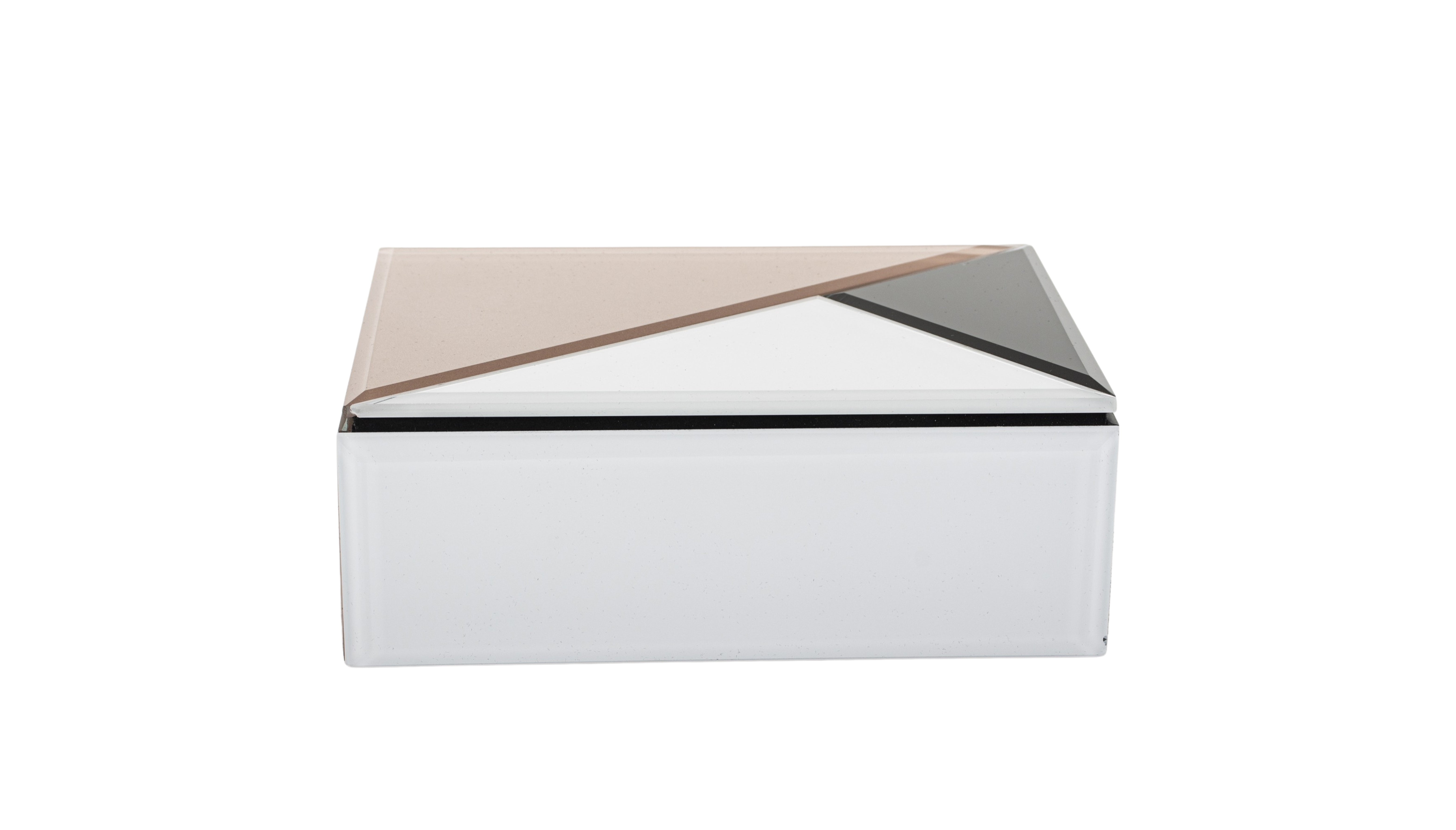 Šī elegantā stikla rotu lādīte ir izteiksmīgs interjera akcents un praktisks risinājums rotu uzglabāšanai. Mūsdienīgais ģeometriskais dizains ar dažādu toņu stikla plaknēm piešķir lādītei unikālu raksturu, savukārt mīkstā samta iekšpuse pasargā rotas no skrāpējumiem un nodrošina greznu sajūtu ikdienā.