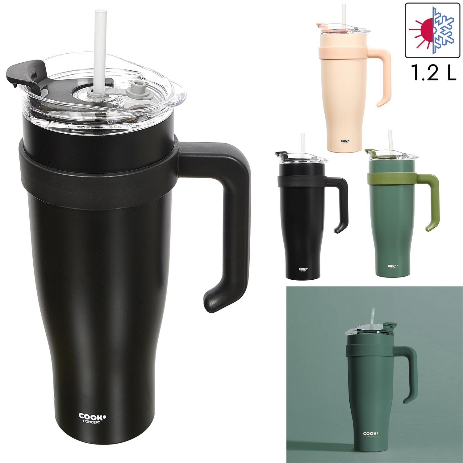 Termokrūze ar rokturi un salmiņu 1,2 L
