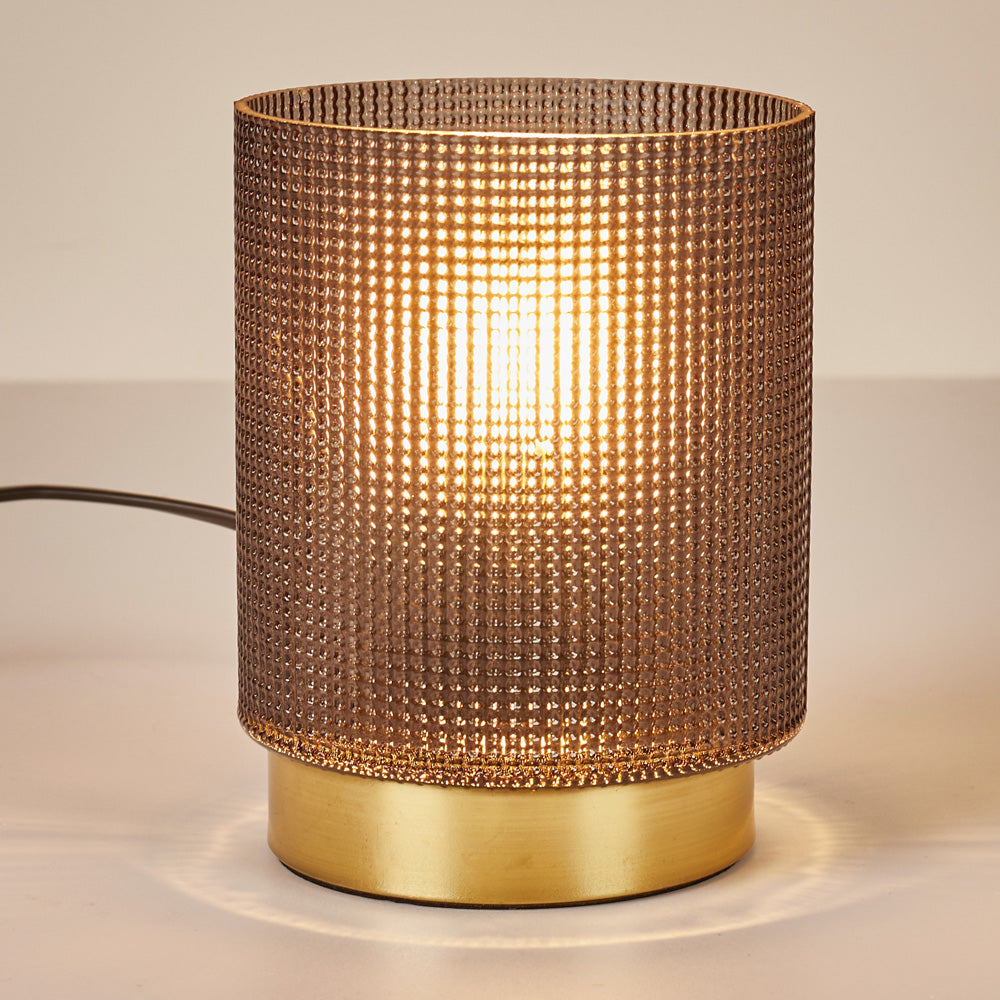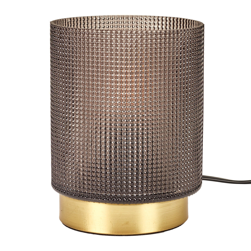 Tumši brūna galda lampa ar reljefu stiklu u zelta pamatni