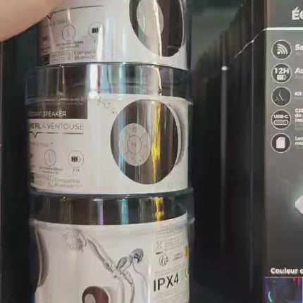 Baudi savu iecienītāko mūziku arī dušā! Šis ūdensizturīgais Bluetooth skaļrunis ir radīts aktīvai ikdienai – to var droši izmantot vannasistabā, dušā, virtuvē vai pat ārā. Praktiskā piesūcekņa stiprinājuma dēļ skaļruni viegli piestiprināt pie flīzēm, stikla vai citām gludām virsmām, nodrošinot stabilu noturību un skaidru skaņu.