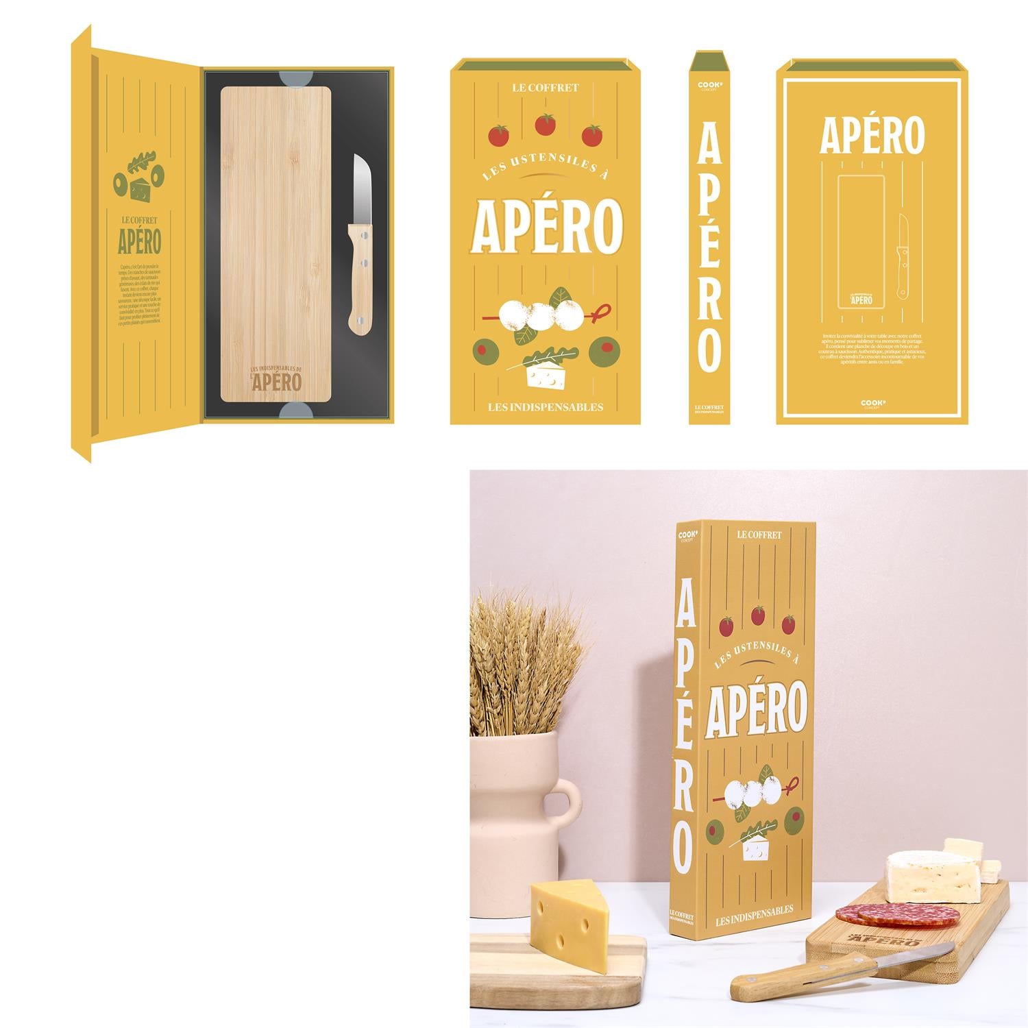 Stilīgs un praktisks apéro komplekts ikvienam, kas mīl skaisti pasniegt uzkodas – sieru, desas, tapas un citas gardas uzkodas. Komplektā iekļautie piederumi ļauj ērti sagriezt un pasniegt ēdienu gan ikdienā, gan svētkos.