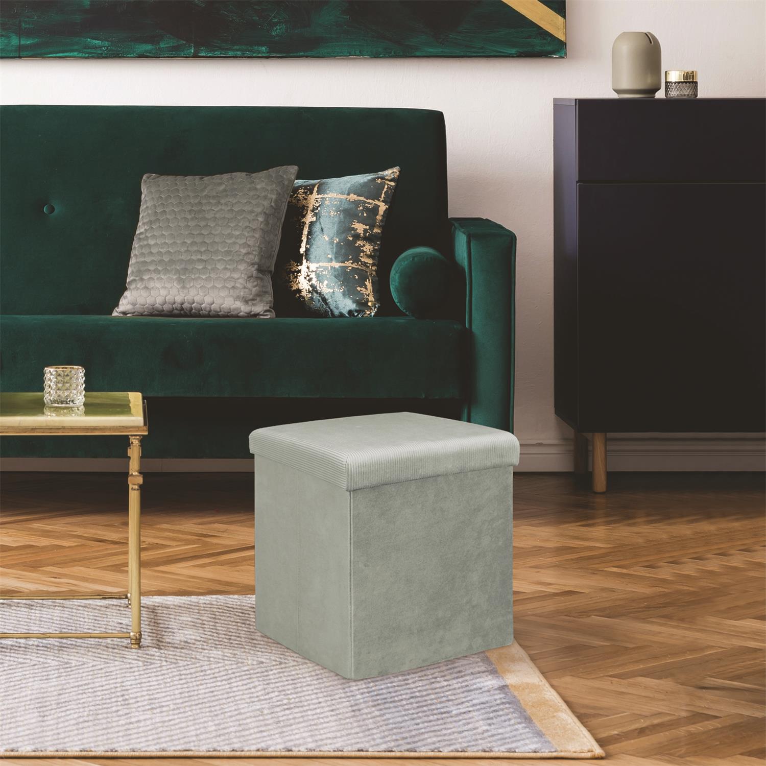 Pelēks kordvelveta uzglabāšanas pufs – 38 x 38 x 38 cm