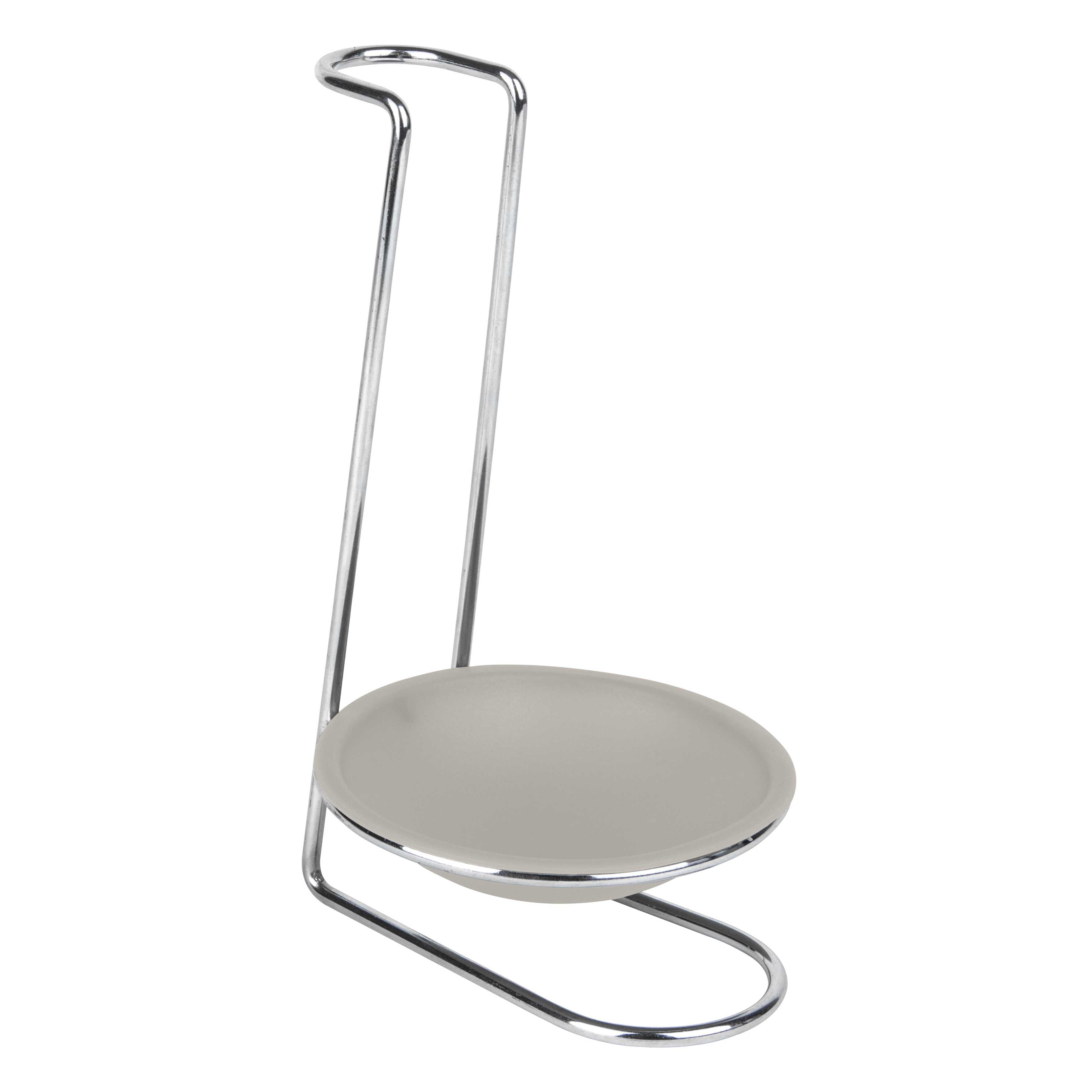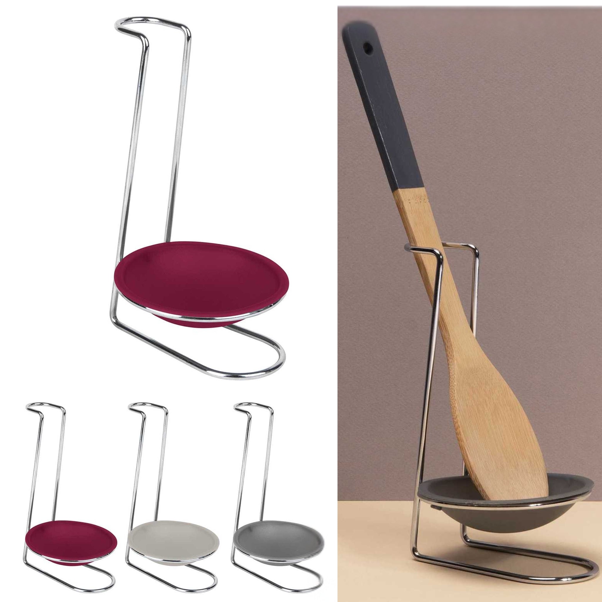 Šis modernā dizaina virtuves piederumu turētājs ir lielisks palīgs ikdienas gatavošanā. Metāla statīvs nodrošina stabilu atbalstu, savukārt apaļais paliktnis savāc mērču, eļļas un ūdens pilienus, neļaujot tiem notecēt uz galda vai plīts.