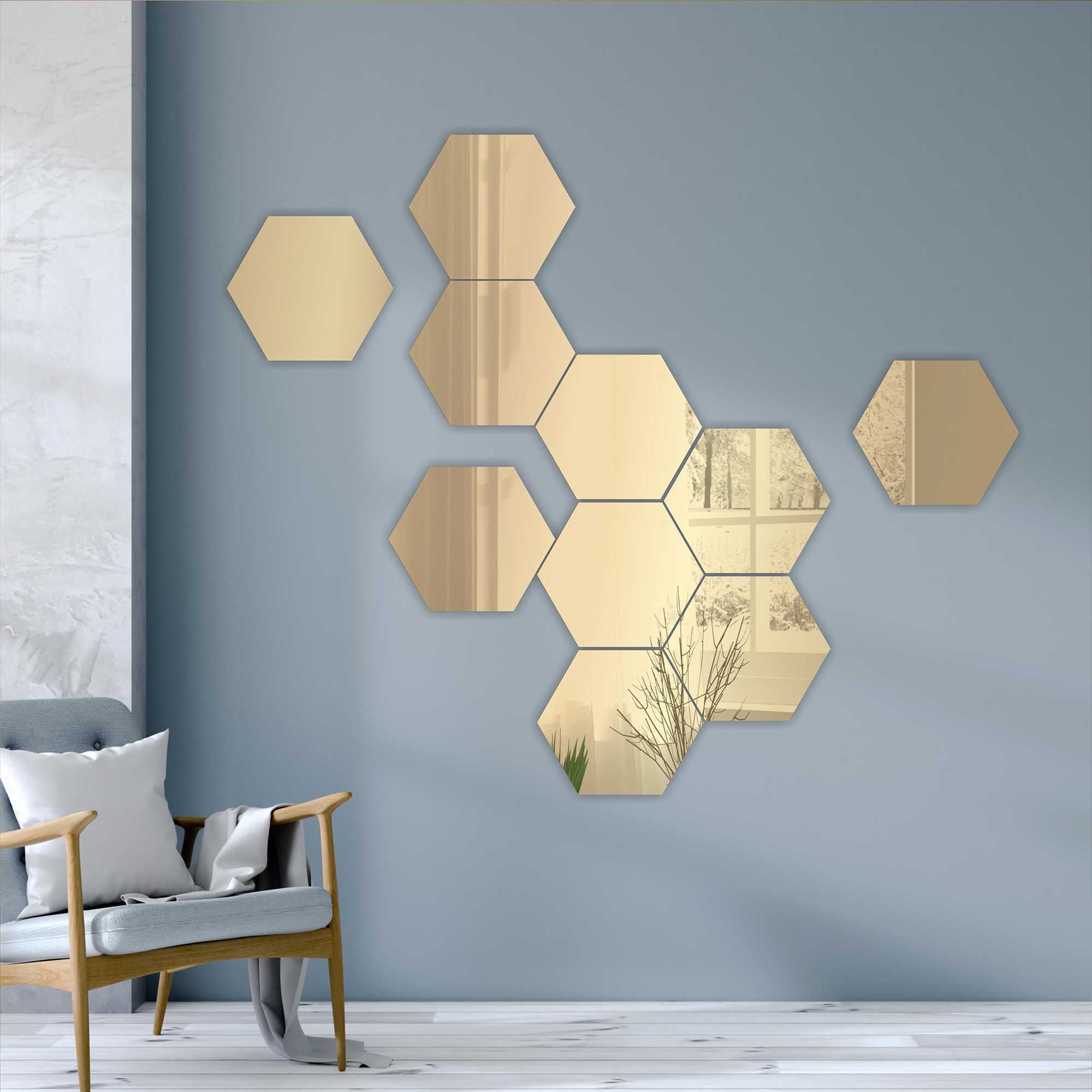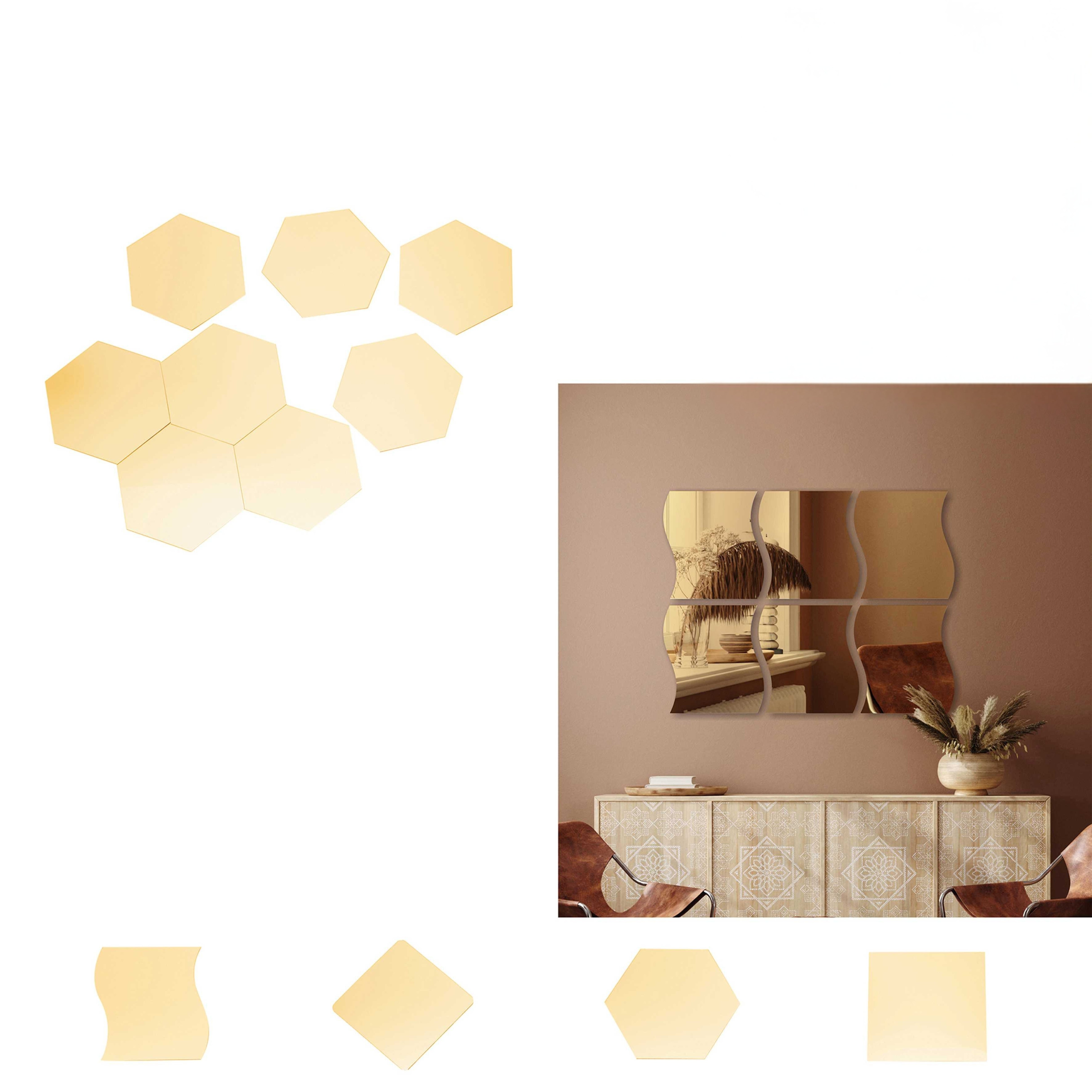 Zelta dekoratīvie sienas spoguļi (12 gab.) – modulārs dizains