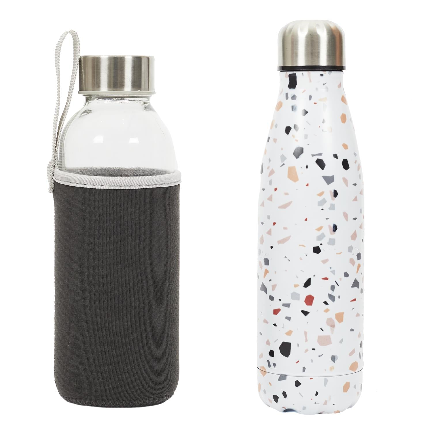 Divu pudeļu komplekts – stikla + termopudele (2 × 500 ml)