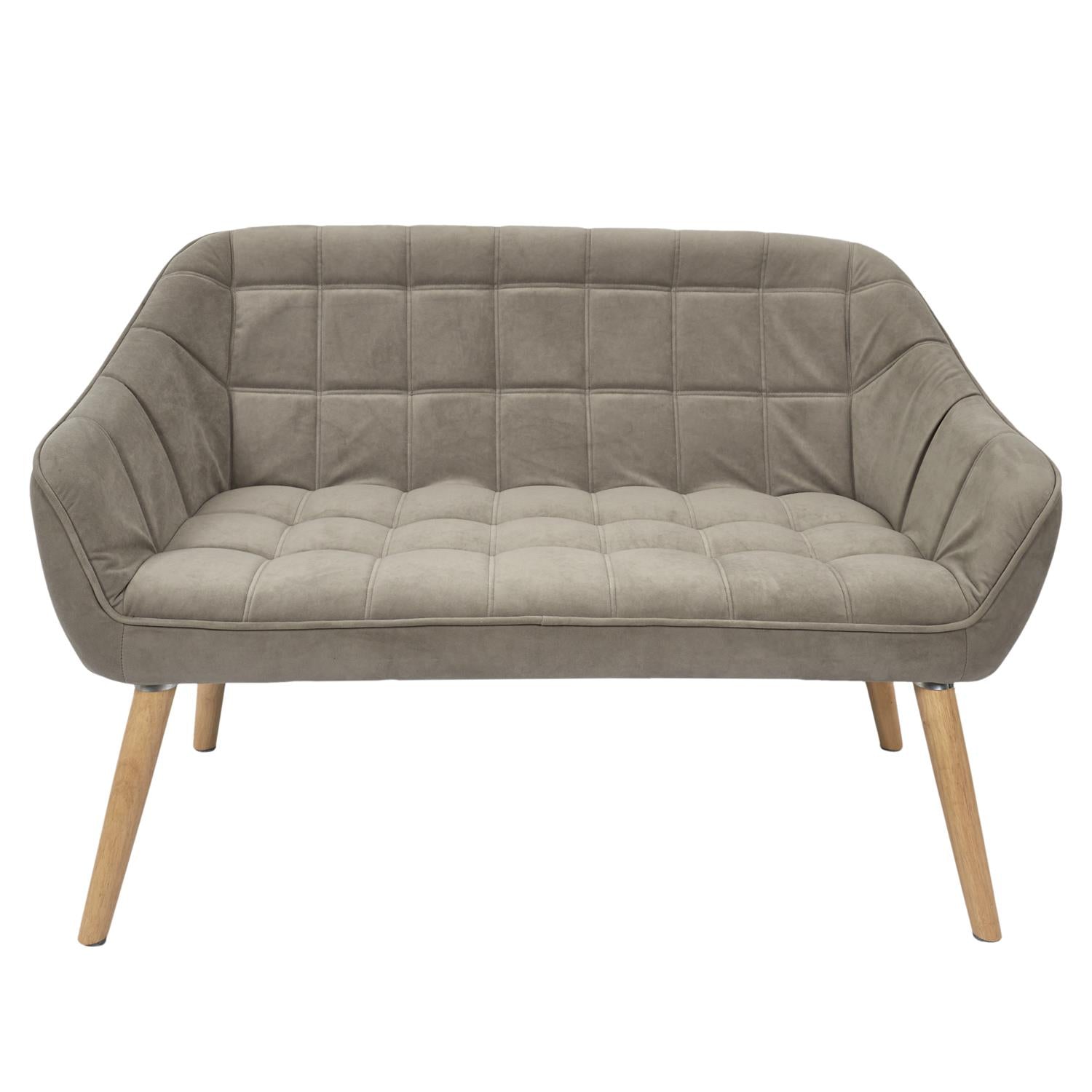 Šis kompaktais divvietīgais dīvāns ir lieliska izvēle modernam, skandināviskam vai minimālistiskam interjeram. Elegantā pelēkā apdare, dekoratīvā kvadrātveida stepēšana un dabīgā koka kājas rada mājīgu, bet vienlaikus stilīgu noskaņu. Ideāli piemērots viesistabai, guļamistabai, kabinetam, uzgaidāmajai telpai vai butika tipa interjeram.