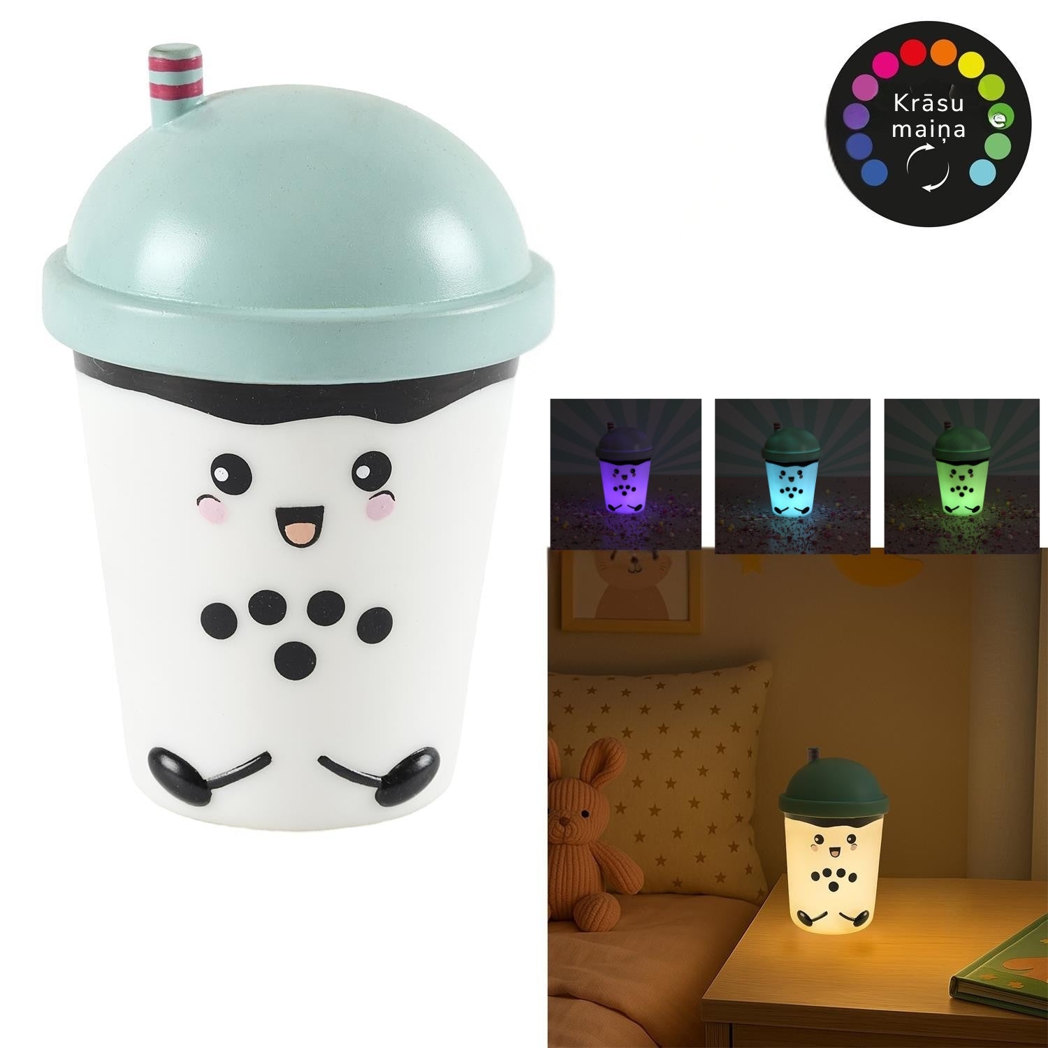 Naktslampiņa “Kawaii Bubble Tea” ar krāsu maiņu – mīksta un spaidāma